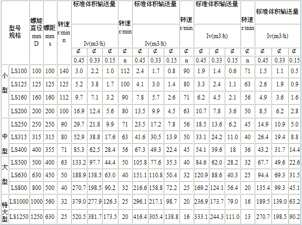 LS螺旋輸送機規(guī)格表: